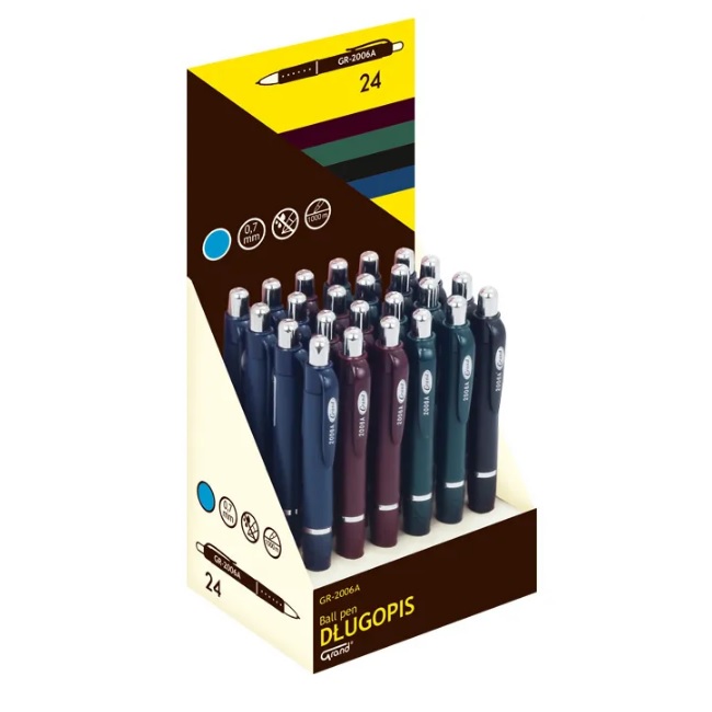 - ергономичен захват – водоустойчиво мастило, синьо; – дължина на писане: 1000 м – дебелина на линията 0,7 мм |