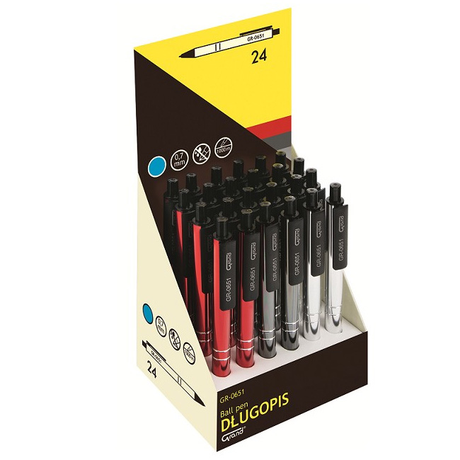 Автоматична химикалка Grand GR-0651 Син 0.7mm Марка:Grand цвят:Син опаковка:1/24 дебелина на линията:0.7 вид:автоматична |