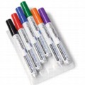 Комплект маркери за писане върху бели дъски и флипчартове. Включва цветовете черно, червено, синьо, зелено, оранжево и лилаво Обли сменяеми върхове с дебелина: от 1.5mm до 3.0mm, с висококачествен алуминиев корпус. Бързосъхнещо мастило на алкохолна основа, със слаба миризма Маркерите могат да се оставят без капачка в продължение на няколко дни без да изсъхнат. |
