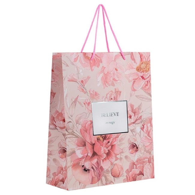 Размери: 32х26x8 cm Изработена от здрав картон с плътност 200 г/м2 Дръжките, изработени от нежна плетка - стилно допълват декора и са удобни за носене. Модерната матова повърхност, пълноцветният печат и фолиото придават на продукта особен чар. Високото качество и стилният дизайн са отличителните белези на подаръчните торбички Axent. |
