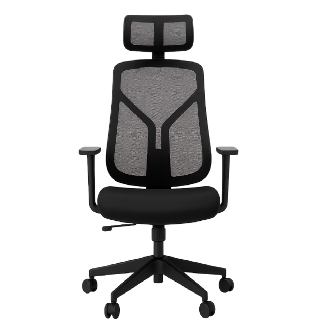 Полиамидна основа в черен цвят. Газов амортисьор за плавно и безстепенно регулиране на височината. Синхронен механизъм със заключване в 4 позиции. Механизма позволява регулиране на ъгъла сключен между седалката и облегалката до 120° Anti – Shock функция, предпазваща седящия при преминаване от една позиция на наклона в друга. Регулиране силата на люлеене според теглото на седящия. 3D регулируеми подлакътници. Ергономични седалка и облегалка. Седалка – инжектирана пяна, тапицирана в дамаска в черен цвят. Облегалка – мрежа в черен цвят. 2D регулируема опора за глава на височина и ротация. Допустимо тегло на натоварване – 120 кг. |