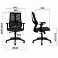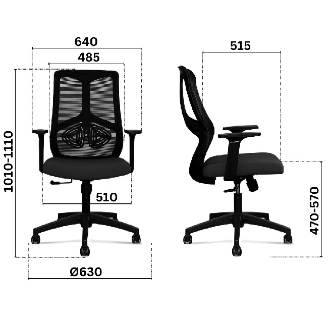 Полиамидна основа в черен цвят. Газов амортисьор за плавно и безстепенно регулиране на височината. TILT механизъм със заключване в изходна позиция. Ергономична облегалка, изработена от мрежа в черен цвят. Лумбална опора – фиксирана. Седалка изработена в дамаска в черен цвят. Фиксирани подлакътници. Допустимото натоварване е до 120 кг. |