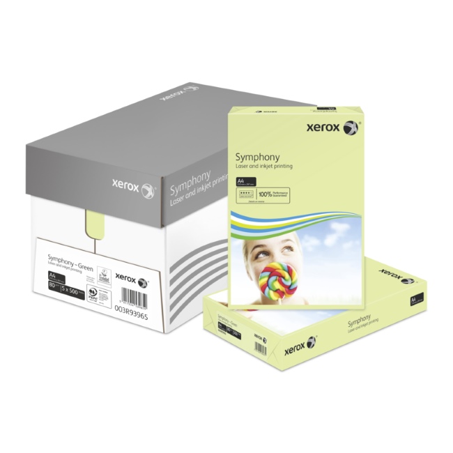 Цветна хартия Xerox Symphony Зелен Пастел A4 500 л. 80 g/m2 Марка:Xerox формат:A4 цвят:Зелен Плътност g/m2:80 Тегло (kg):2.50 вид:пастел |